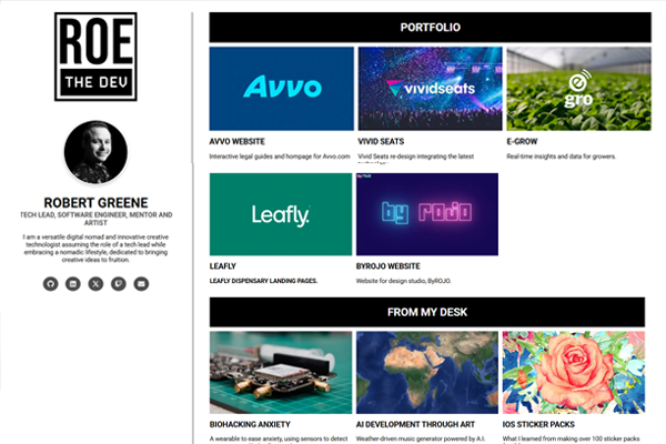 Created the website for full-stack developer, Robert Greene. Tasks included: mock design, graphic design, html/css, javascript.